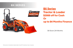$0 Down, 4.99% A.P.R. financing for up to 84 months on purchases of select new Kubota BX series equipment from